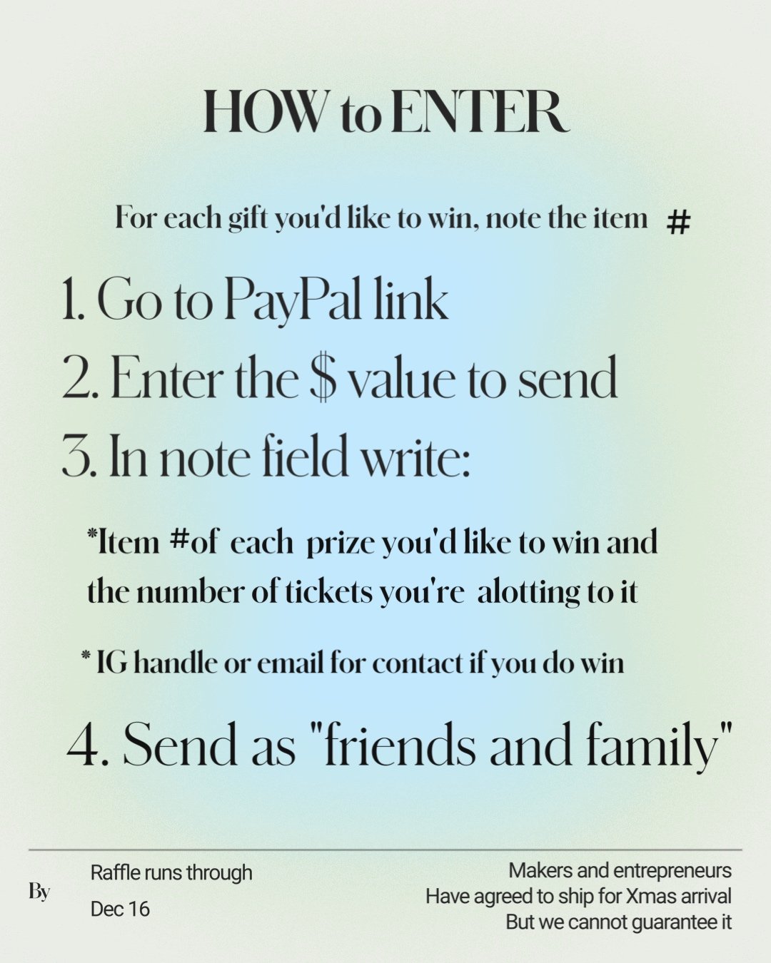 a. the item # of each prize you’d like to win. If you are entering for multiple prizes, write how many tickets to allot to each one